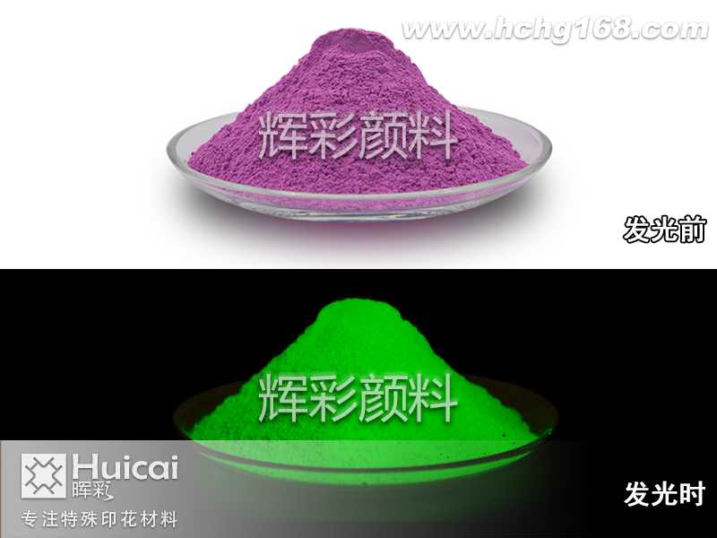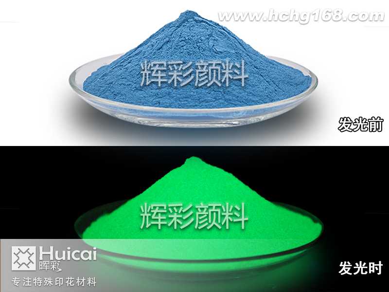 目前輝彩在夜光粉這個市場上,有大部分的顏色如:黃綠光,藍綠光,特殊的天藍光,白色光,綠色光,粉紅色光,桃紅色,黃色光,桔紅色,橙色等,不排除其他材料廠有其他顏色。
