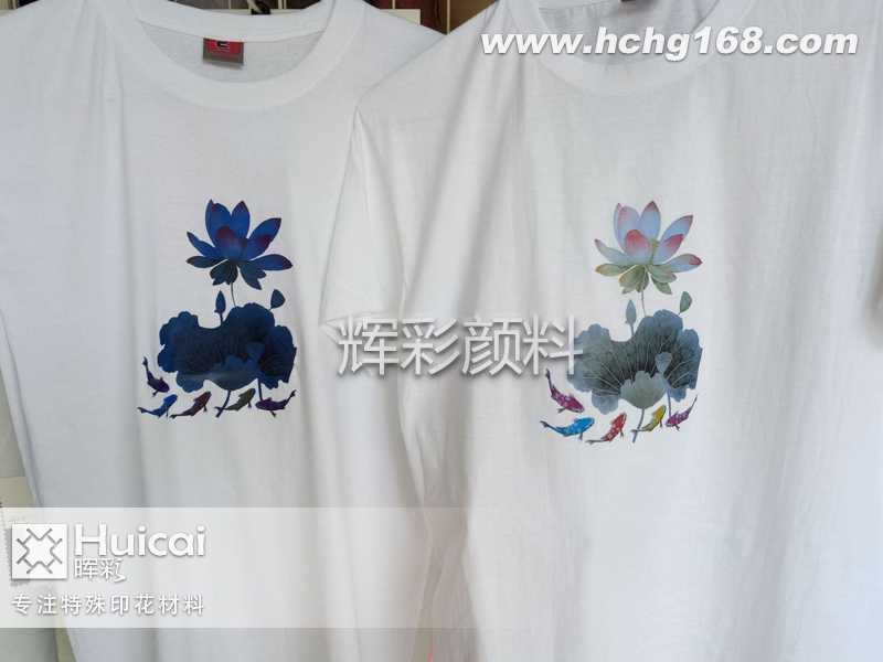 隨著溫度的變化而發生顏色變化,這種主要是由于在服裝印花材料中添加了服裝感溫變色顏料,這種溫變粉是隨著溫度的改變而發生顏色的變化,顏色的變化種類比較多,變色的模式主要為透明色變為有色再到透明色,或者是有色變透明色再到有色。平時保持原來的顏色,當溫度發生改變的時候,顏色也會隨之發生改變,等溫度恢復到原來的時候,顏色也會恢復。