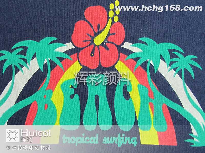 輝彩彩拔漿和拔白漿主要用于純棉活性染料,直接染料,滌綸分散染料及蛋白質纖維染料的新型拔白漿,它適用于布匹,衣片或成衣印花等。輝彩彩拔漿不僅可以用在普通布料上,而且用在絲印上可以可以。只要過壓燙機或烘焙時最好是在七八成干的時候,效果最好。